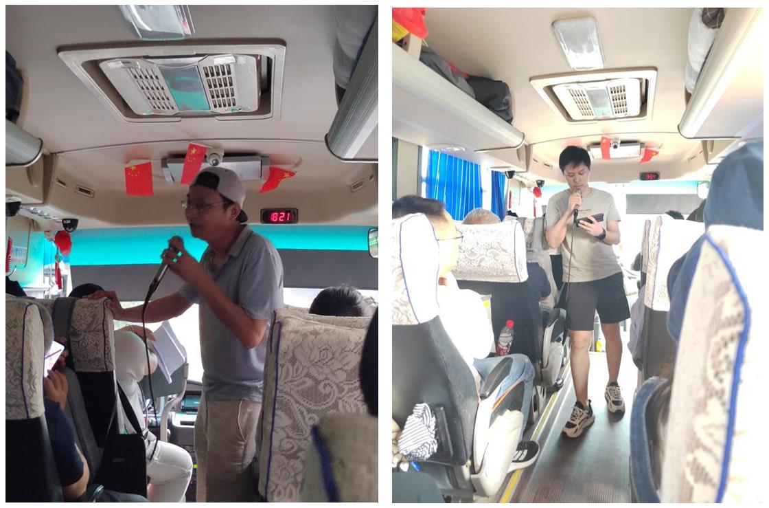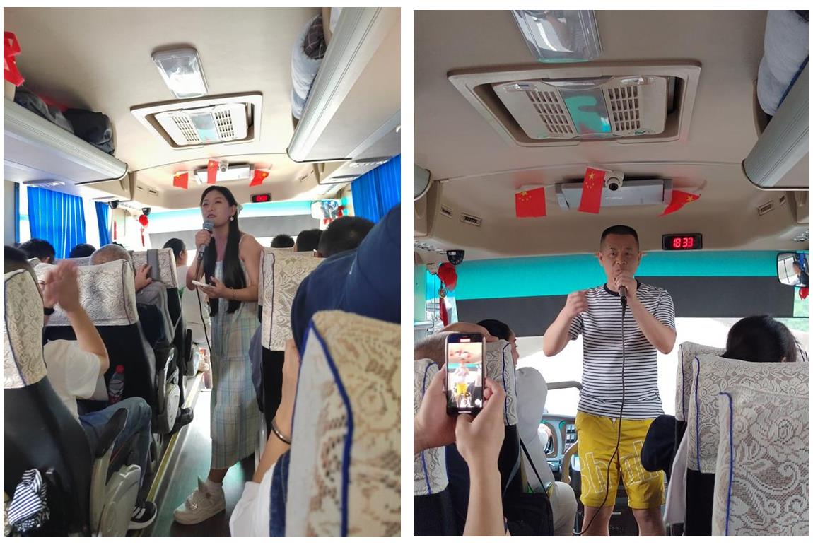 19日清晨,我們迎著朝陽帶著快樂的心情出發(fā)啦。一路上,才子佳人們拿出他們的十八般武藝進行了節(jié)目表演,有歌曲獨唱、合唱,有詩朗誦,有單口相聲,有講笑話的、有談感想的,好不熱鬧。